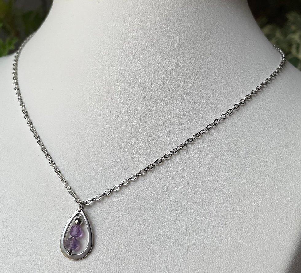 Chaîne en acier inoxydable et Améthyste en pointe. Pierre unique
